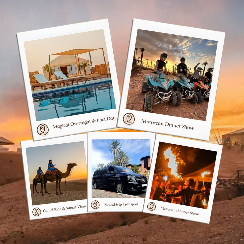 Agafay Desert Magical Overnight, ATV Quad, Camel Ride, Pool & Dinner Show